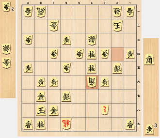 ▲9六玉 △8五銀打 ▲9七玉 △8八角成